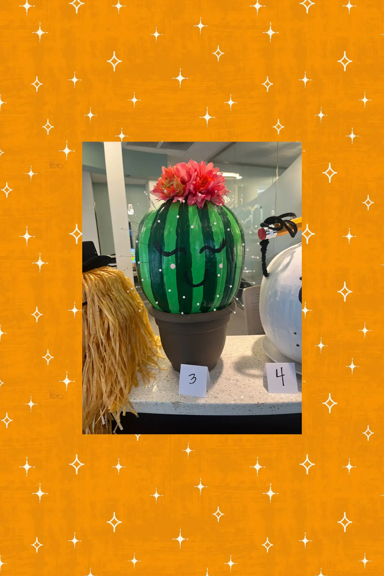 Our team has decorated pumpkins, and we need your vote to pick the winner. The staff member whose pumpkin gets the most votes wins a gift card.